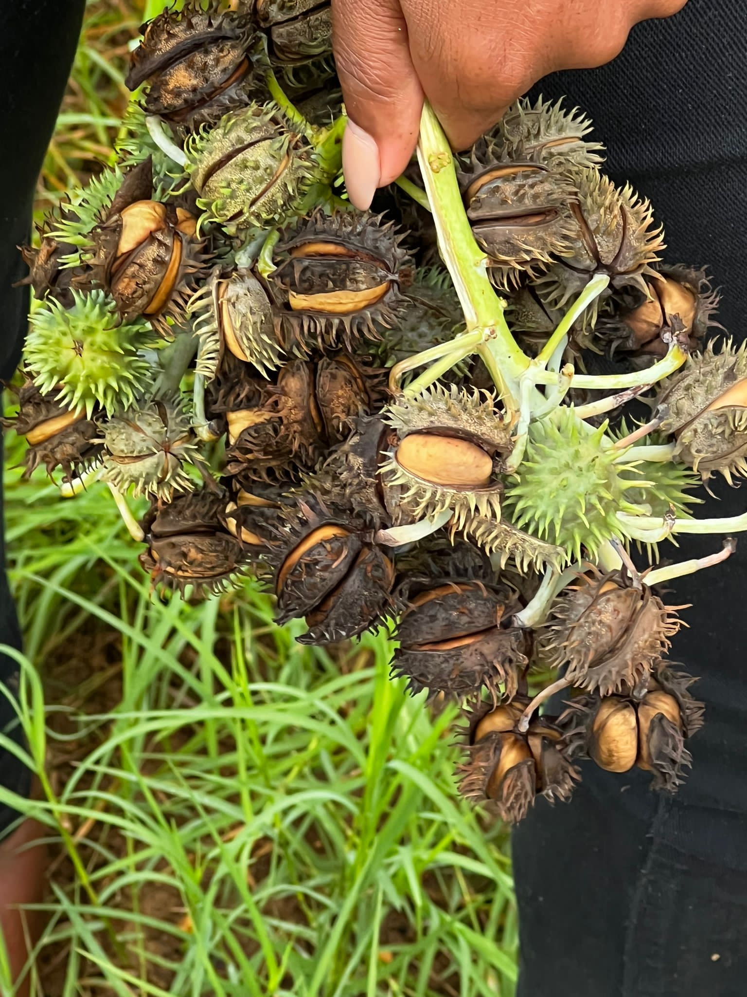 Ricinus communis, the castor bean or castor plant is found in tropical areas. Flora Naturalle castor bean is grown locally on our farms in St. Elizabeth, Jamaica . There are over 22 different variety of beans identified based on there size. Depending on the variety the castor seeds contains 25- 45% of oil. The seeds, leaves and stems of the plant contain ricin which is poisonous to humans and animals, however when boiled this toxic compound is not found in the oil.